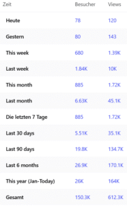An dieser Stelle gilt ein herzliches Dankeschön den über 150‘000 Besuchern meiner Internetseite in den fünf Jahren, die mit über 612‘000 Ansichten das Archiv durchforstet haben.